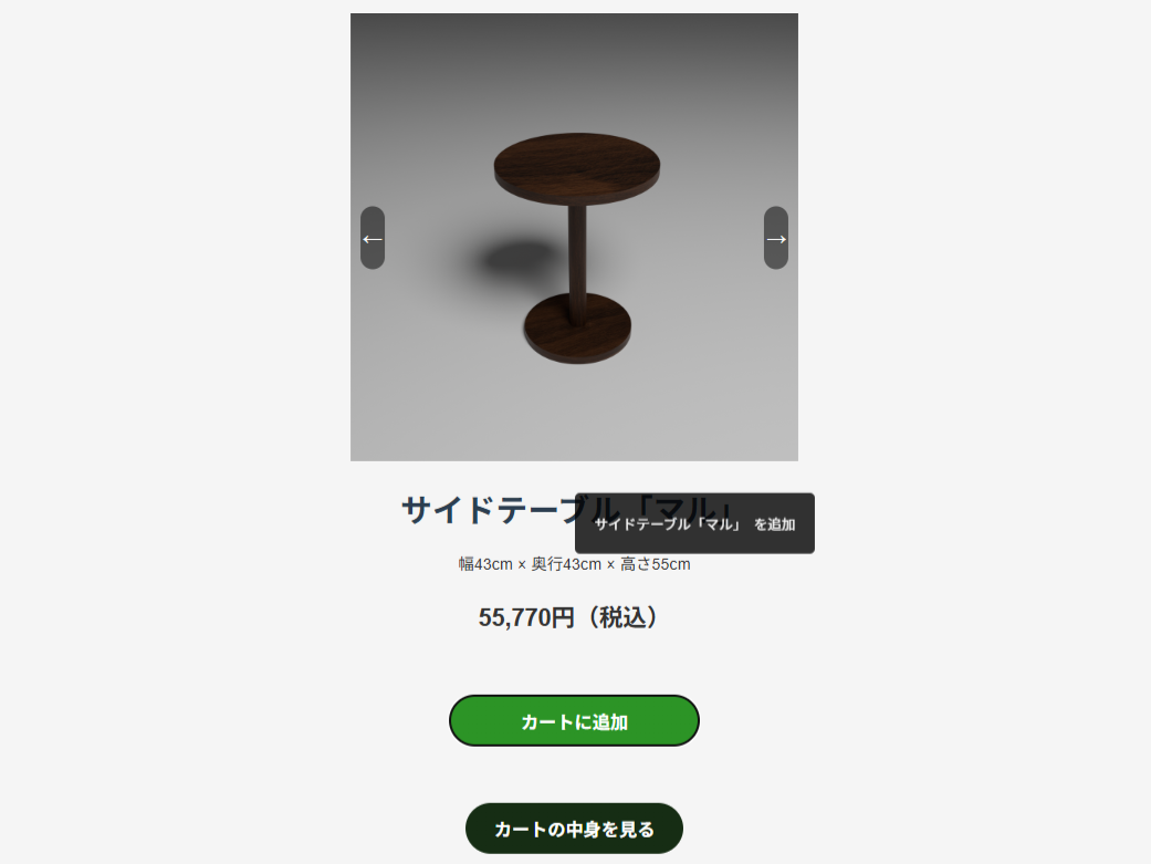 「カートに追加」ボタンをクリックします。